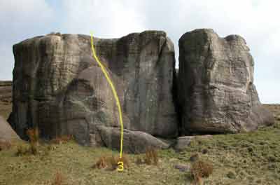 The obvious curving scoop/slab on the centre pinnacle of the Right side. |
