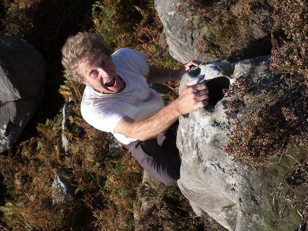The tricky little wall 8 metres right with a crack in the top right. The Pinnacles